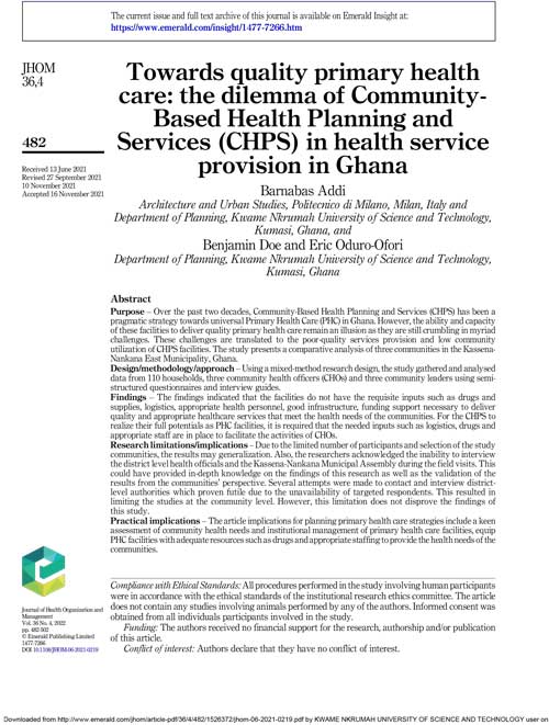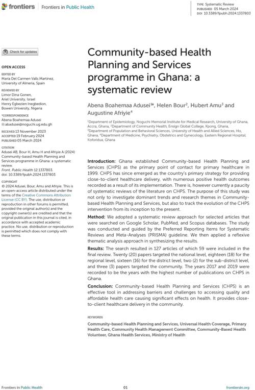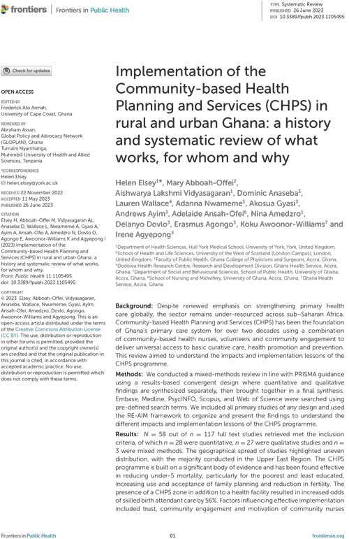 Source: Helen Elsey1*, Mary Abboah-O ei2, Aishwarya Lakshmi Vidyasagaran1, Dominic Anaseba3, Lauren Wallace4, Adanna Nwameme5, Akosua Gyasi3, Andrews Ayim3, Adelaide Ansah-Ofei6, Nina Amedzro1, Delanyo Dovlo3, Erasmus Agongo3, Koku Awoonor-Williams7 and Irene Agyepong3